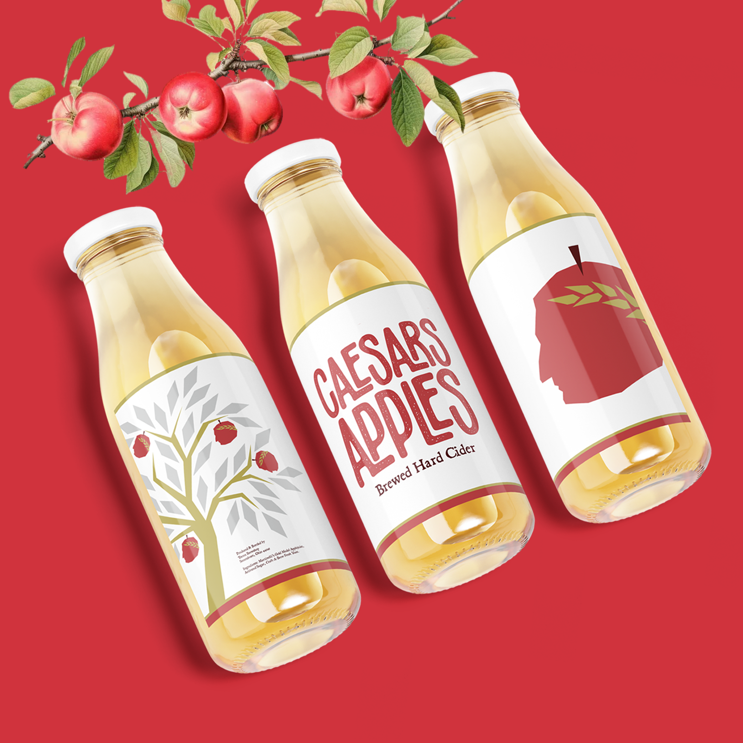 This project was a part of a challenge to design a brand based around a physical product and then create that product in the real world. After researching the origin of hard cider I found that the first written record of hard cider was in 55 BCE during Julius Caesars reign over the Roman Empire when he found the Celts fermenting crabapples to make cider during his conquest of England. He brought that recipe back to Rome and the drinking of cider spread far and wide. In these slides you will see all designed branding collateral, product photos, as well as a storyboard of my process brewing and bottling the first (*and only) batch of Caesars Apples Hard Cider. The final product was a (drinkable, but not great) carbonated semi-sweet cider with about 10% alcohol content.